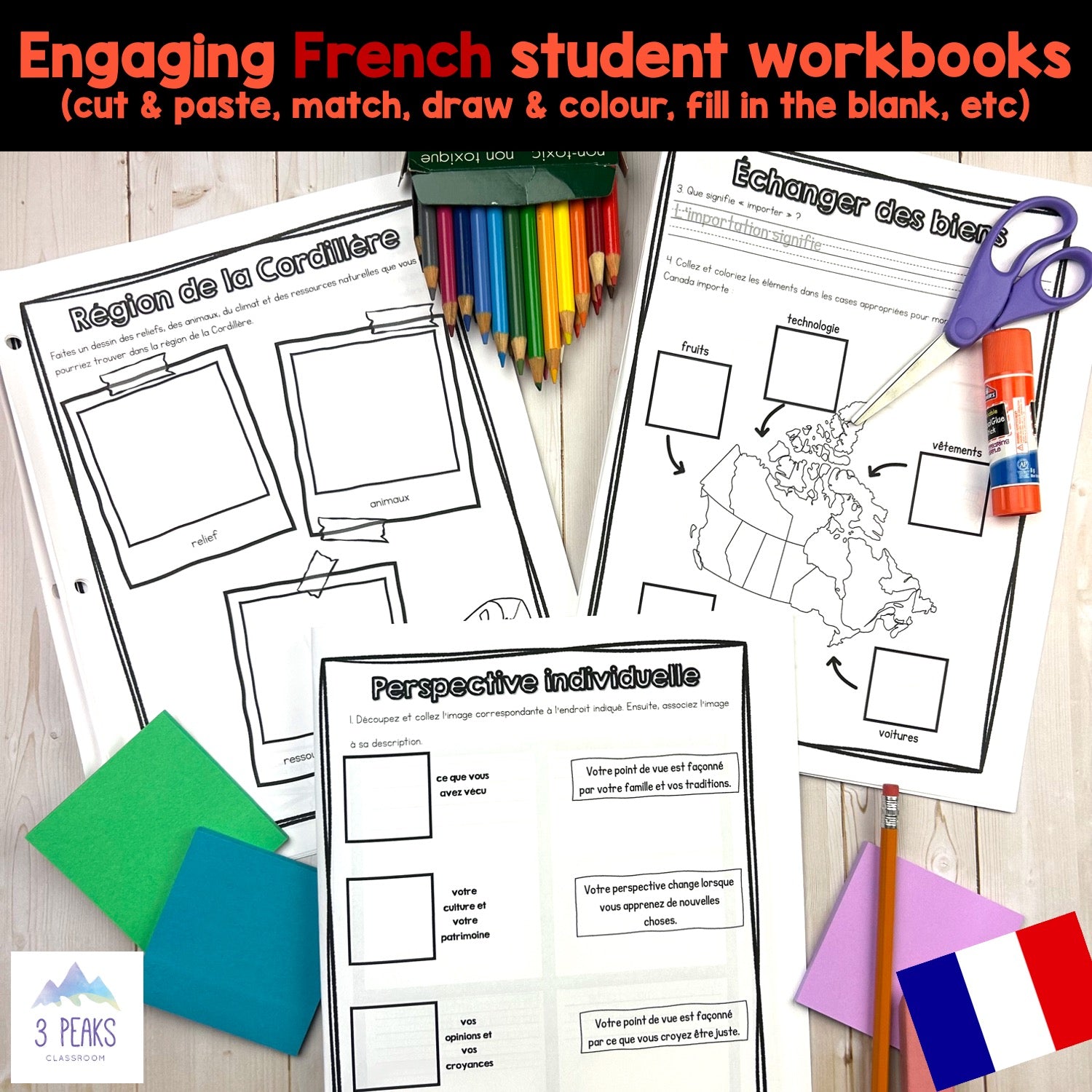 - All FRENCH Student Workbooks (19 printed pages per student TOTAL for the ENTIRE year!)