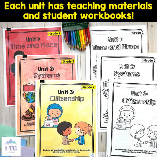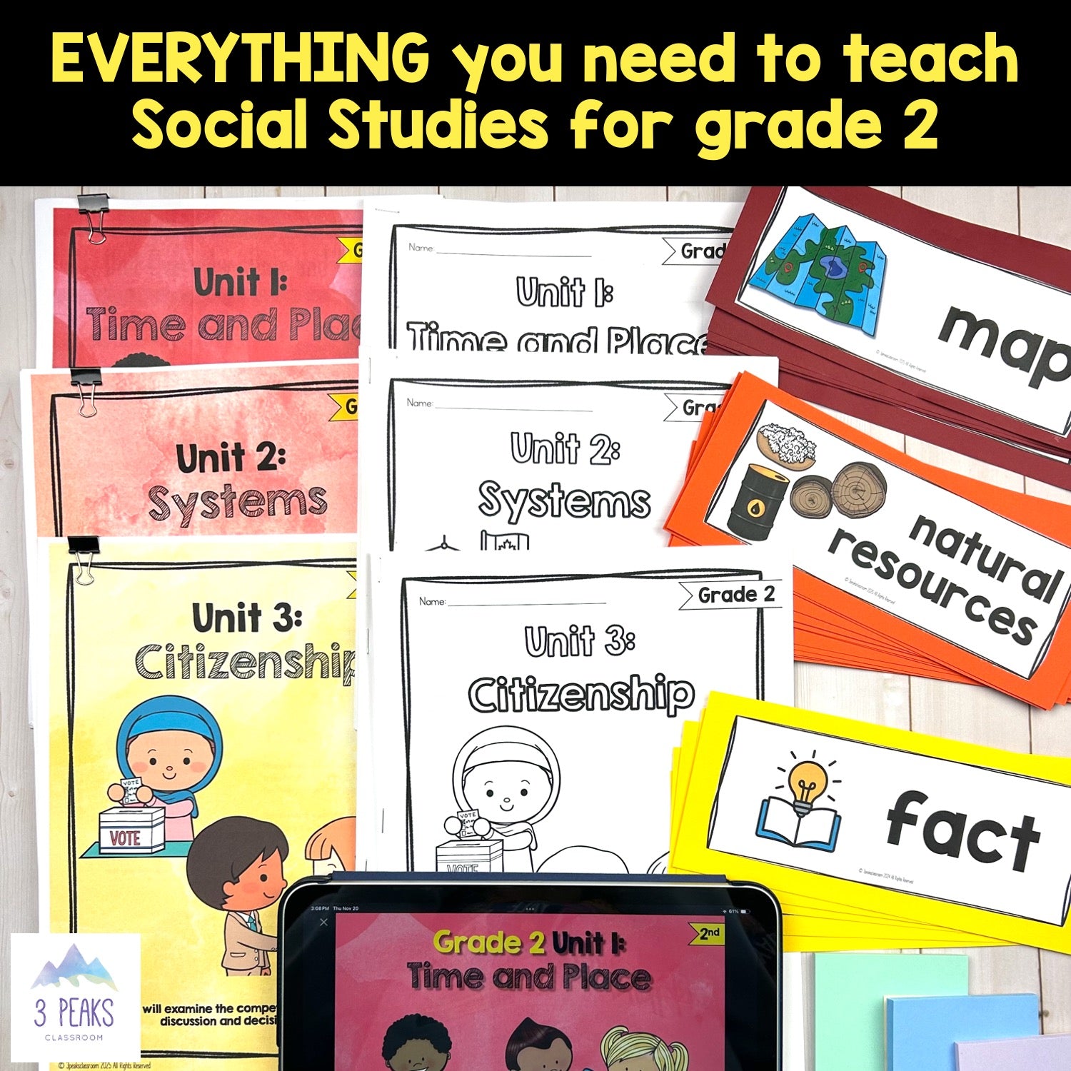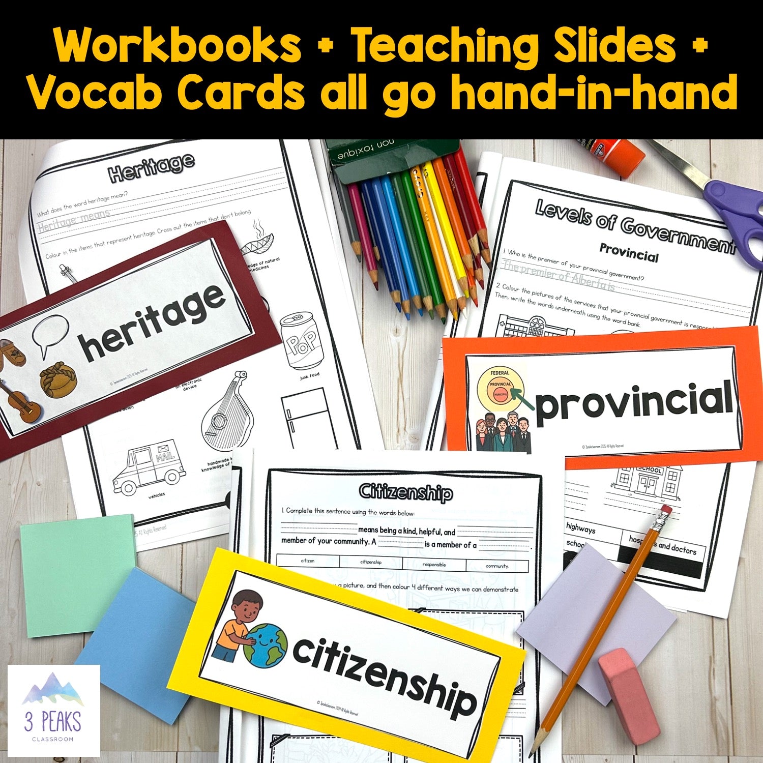 This bundle covers everything you need to teach Grade 2 Social Studies in Alberta.