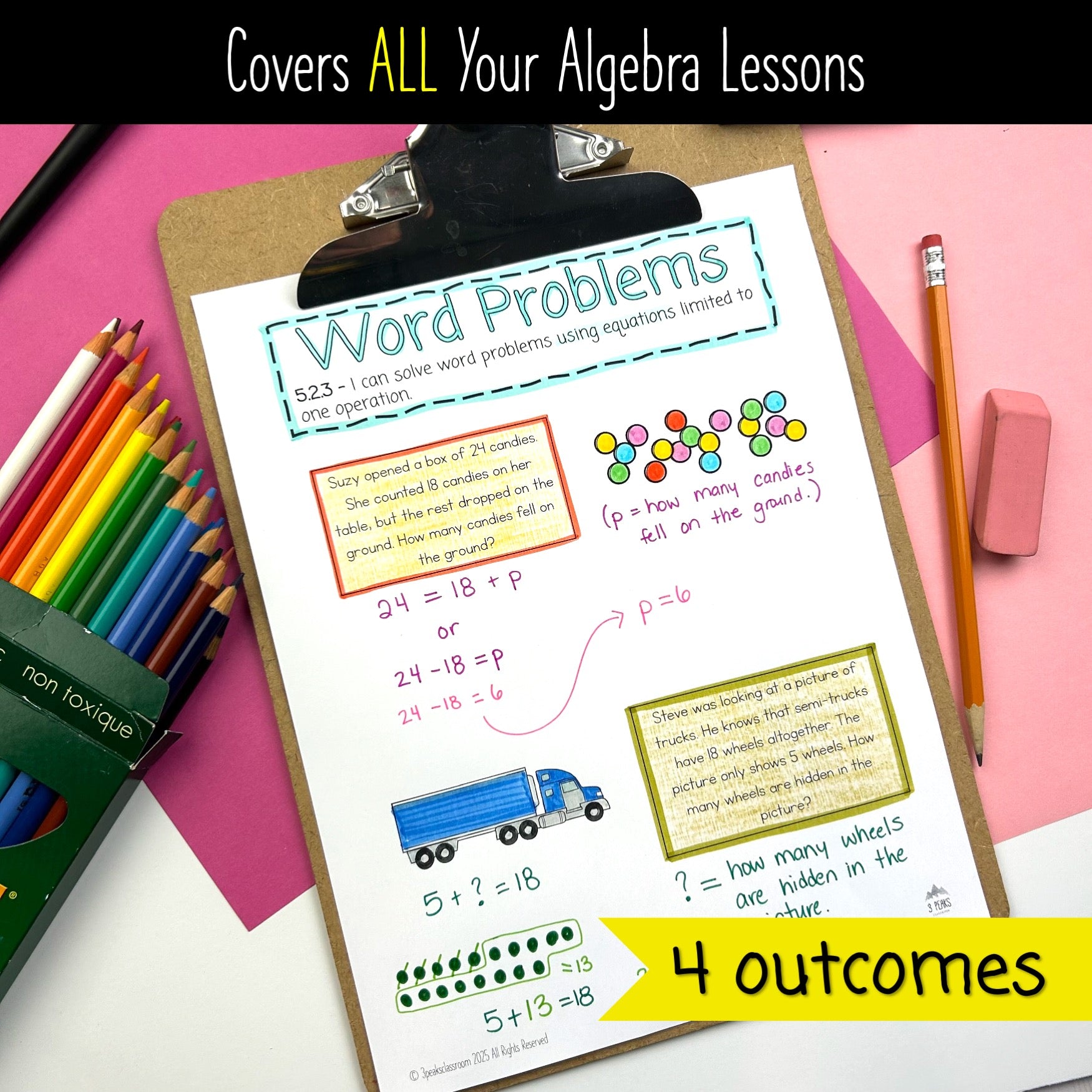 This interactive Algebra Notebook will serve as a practical, engaging resource that students will use and reference throughout the entire year. It covers ALL 4 of your Algebra outcomes in grade 3 (a brand new unit!).