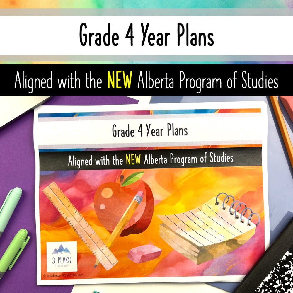 A comprehensive year plan for grade 4, aligned with the AB Program of Studies. Here are the highlights: