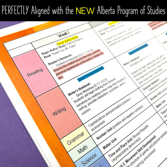 A comprehensive year plan for grade 6, aligned with the NEW AB Program of Studies. Here are the highlights: