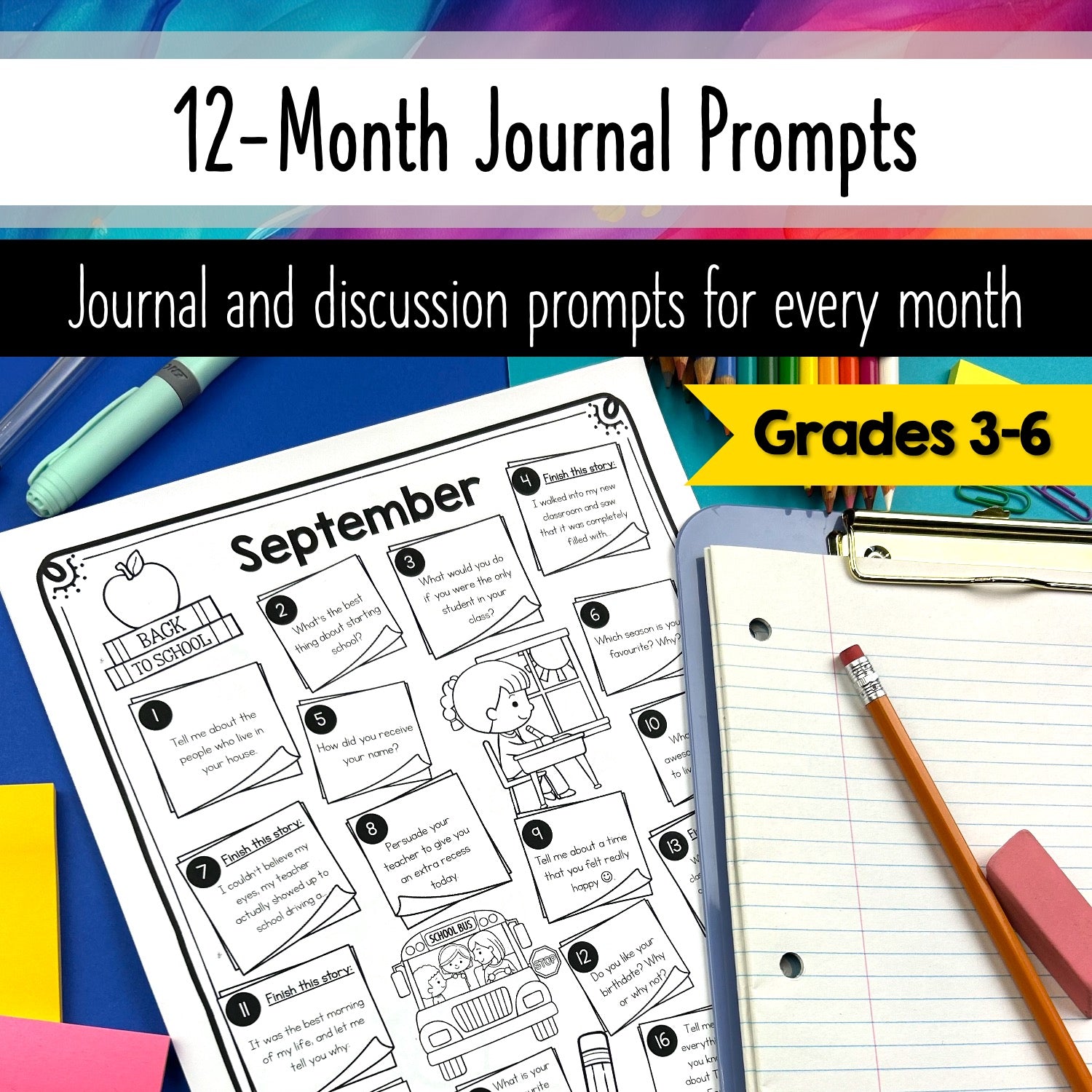 Monthly journal prompts for your Language Arts program for any grades 3-6 classroom!