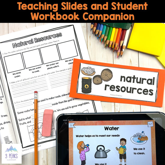 Student workbook is a companion resource to the teaching slides. The teaching slides state what page students should complete right on the slide.