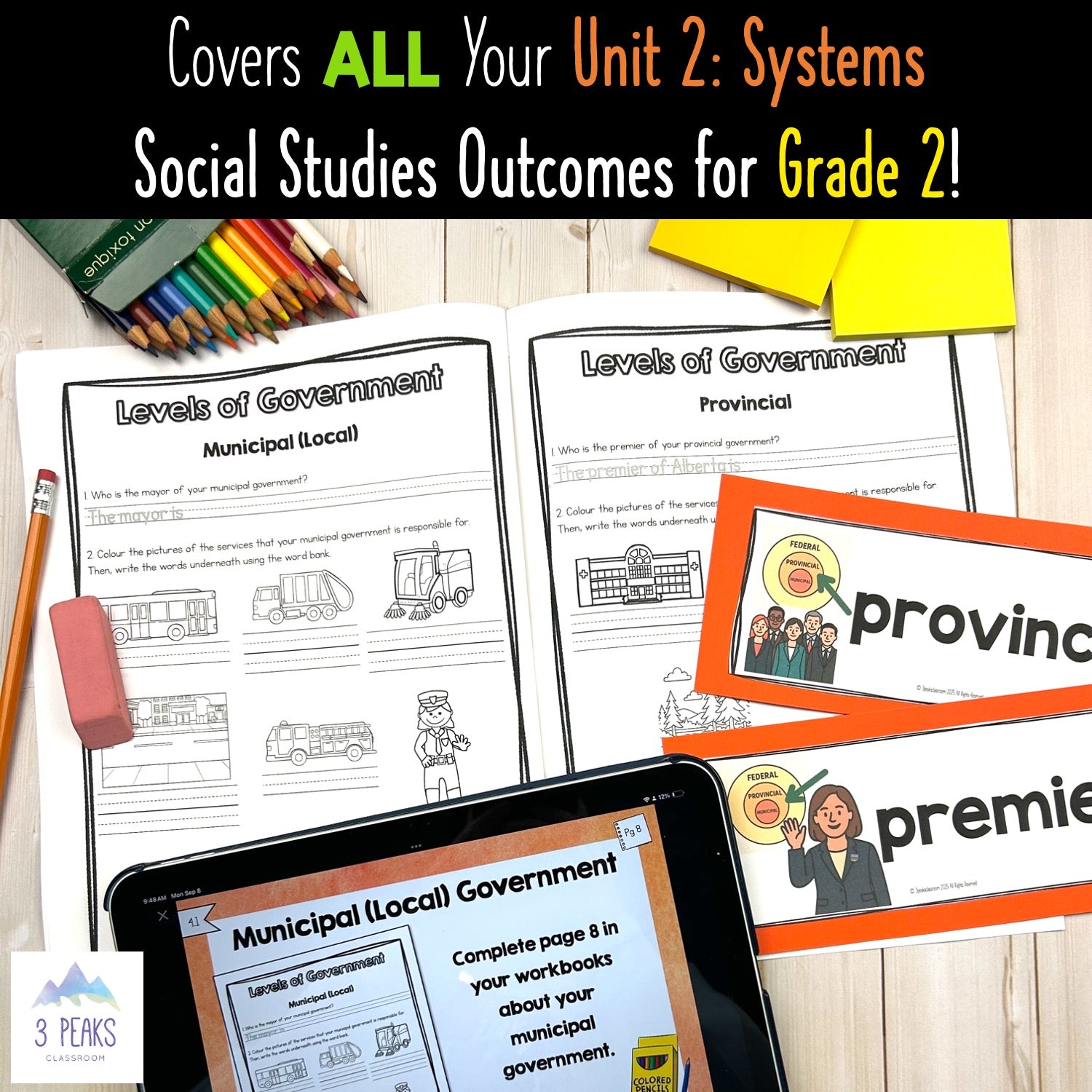 New Alberta Grade 2 Social Studies Curriculum: Unit 2 - Systems Teaching Slides and Student Workbook.