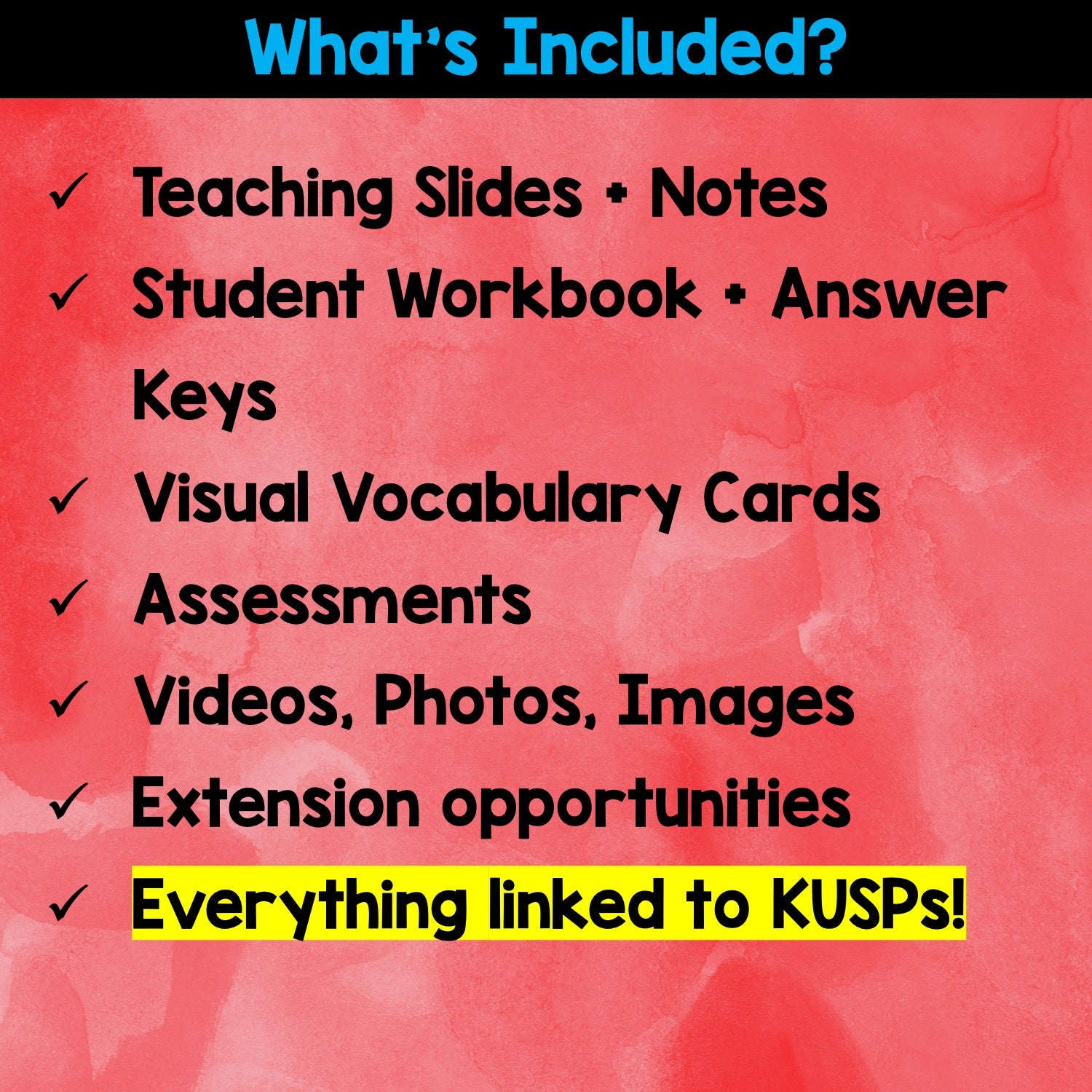EVERYTHING is related to the KUSPs of the brand new curriculum. Each lesson is outlined straight from the curriculum and stated directly on the slide.