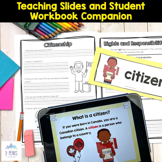 New Alberta Grade 4 Social Studies Curriculum: Unit 4 - Citizenship: Teaching Slides and Student Workbook.