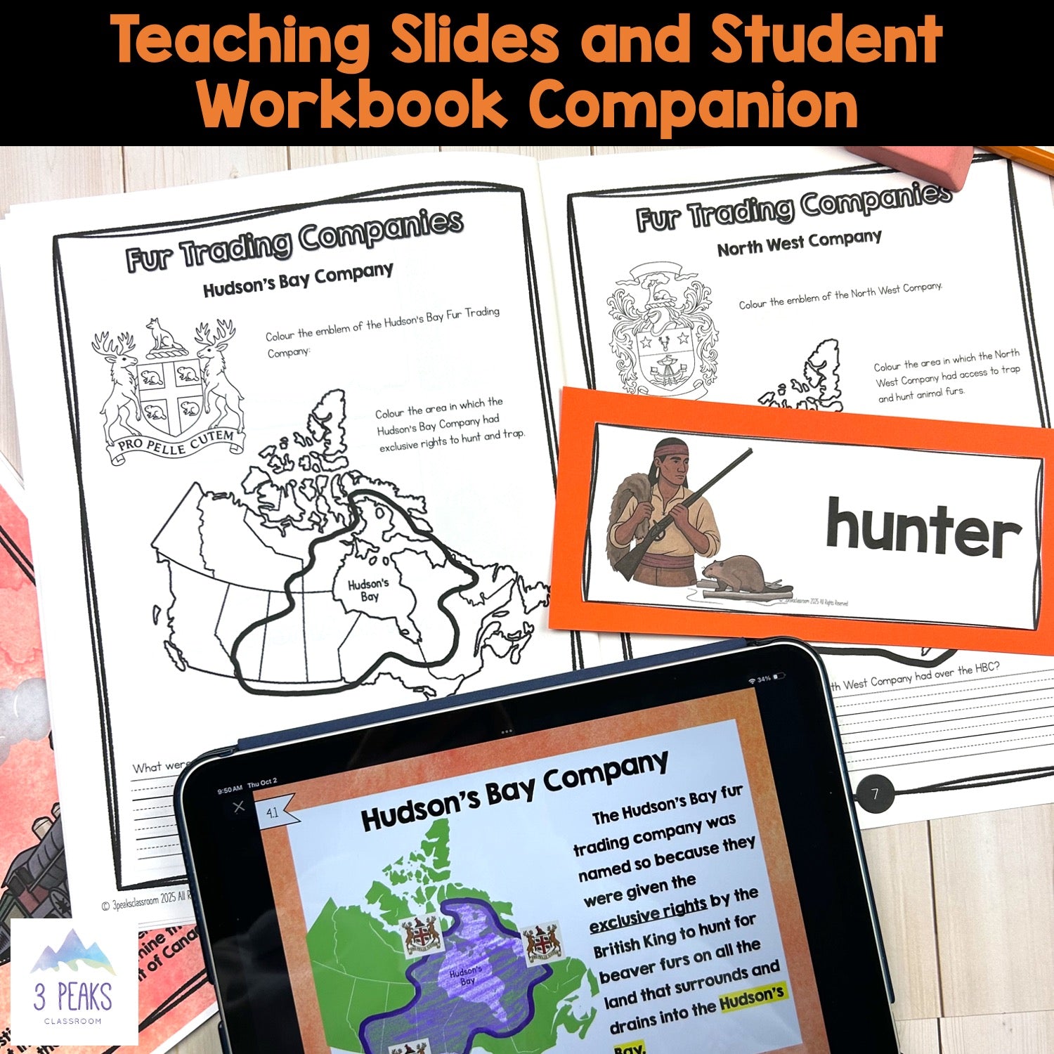 Student workbook is a companion resource to the teaching slides. The teaching slides state what page students should complete right on the slide.