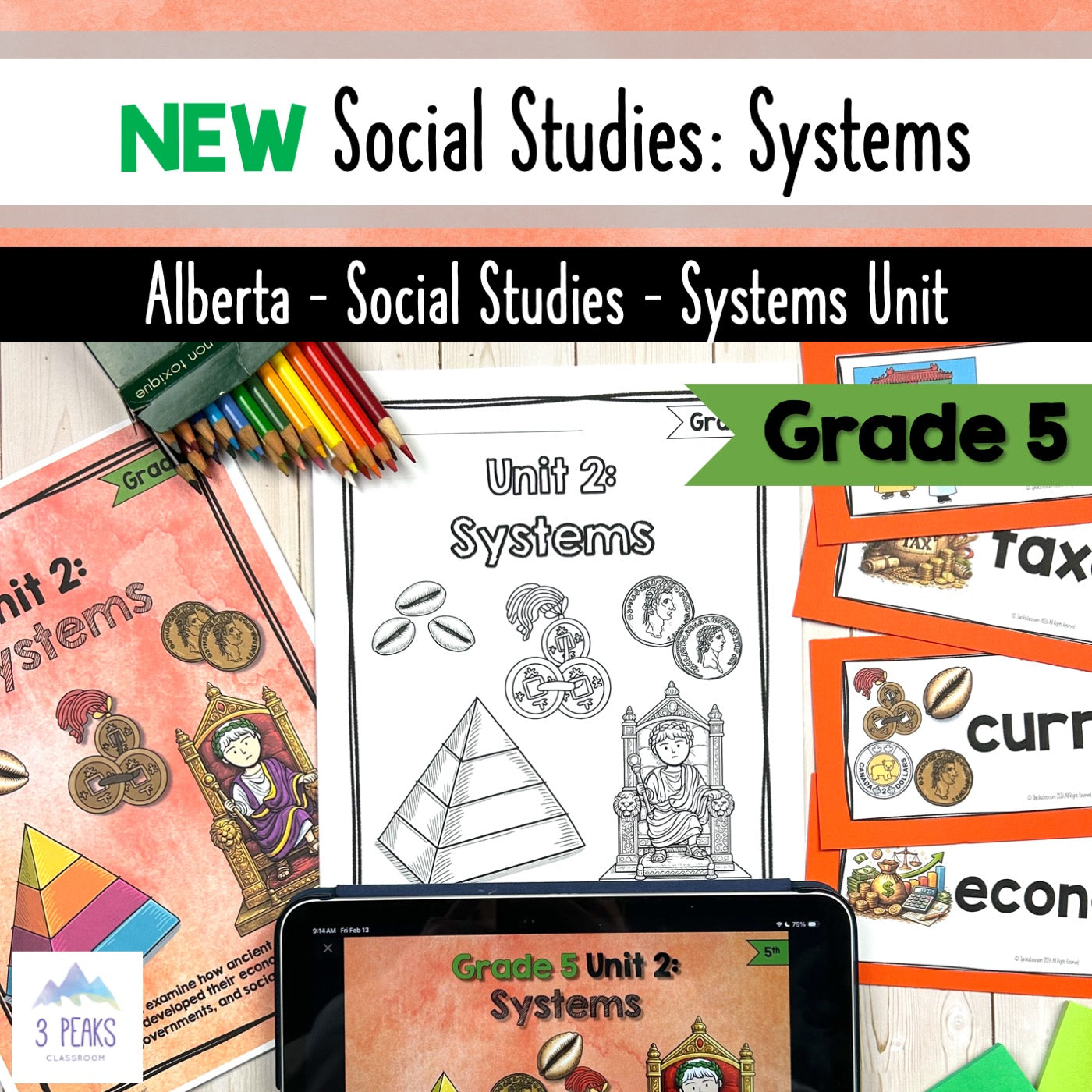 New Alberta Grade 5 Social Studies Curriculum: Unit 2 - Systems Teaching Slides and Student Workbook.