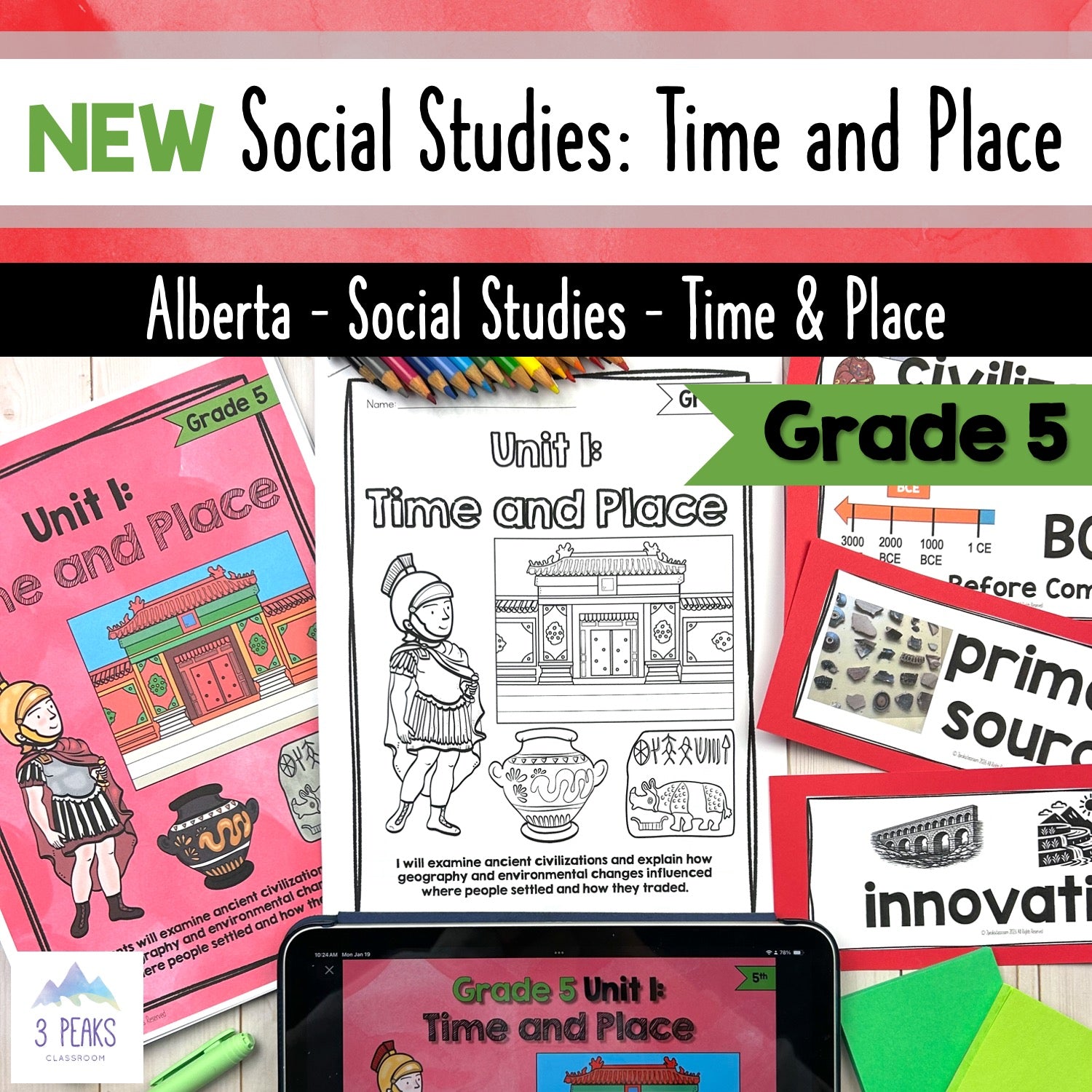 New Alberta Grade 5 Social Studies Curriculum: Unit 1 - Time and Place Teaching Slides and Student Workbook.