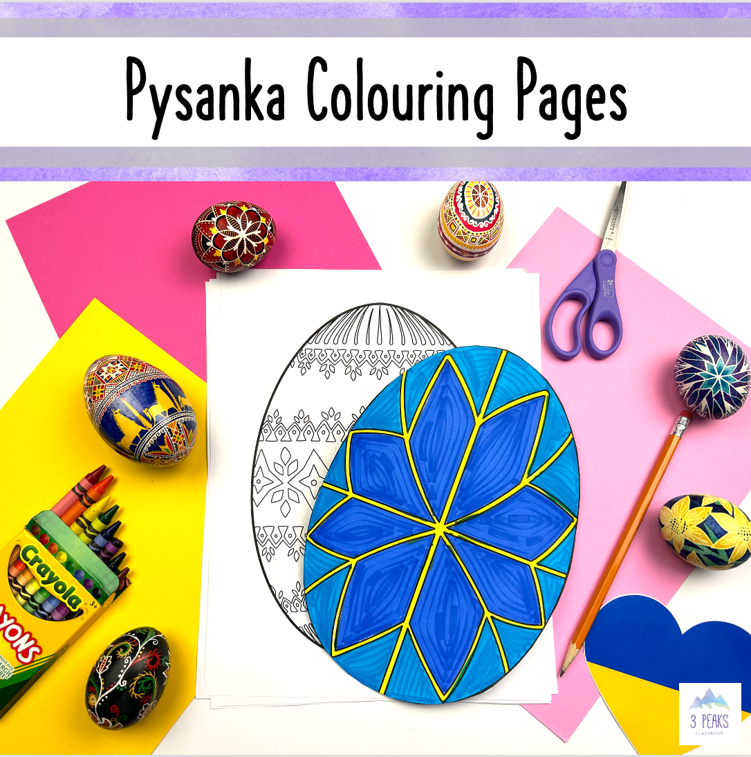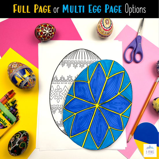- 6 pages of FULL PAGE pysanka to colour (for bulletin board display, mindfulness art, etc).
