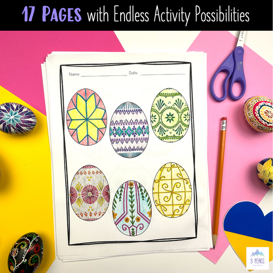 17 Pages of endless activities featuring Ukrainian Pysanky: